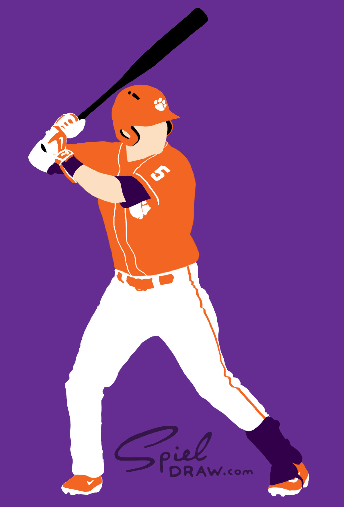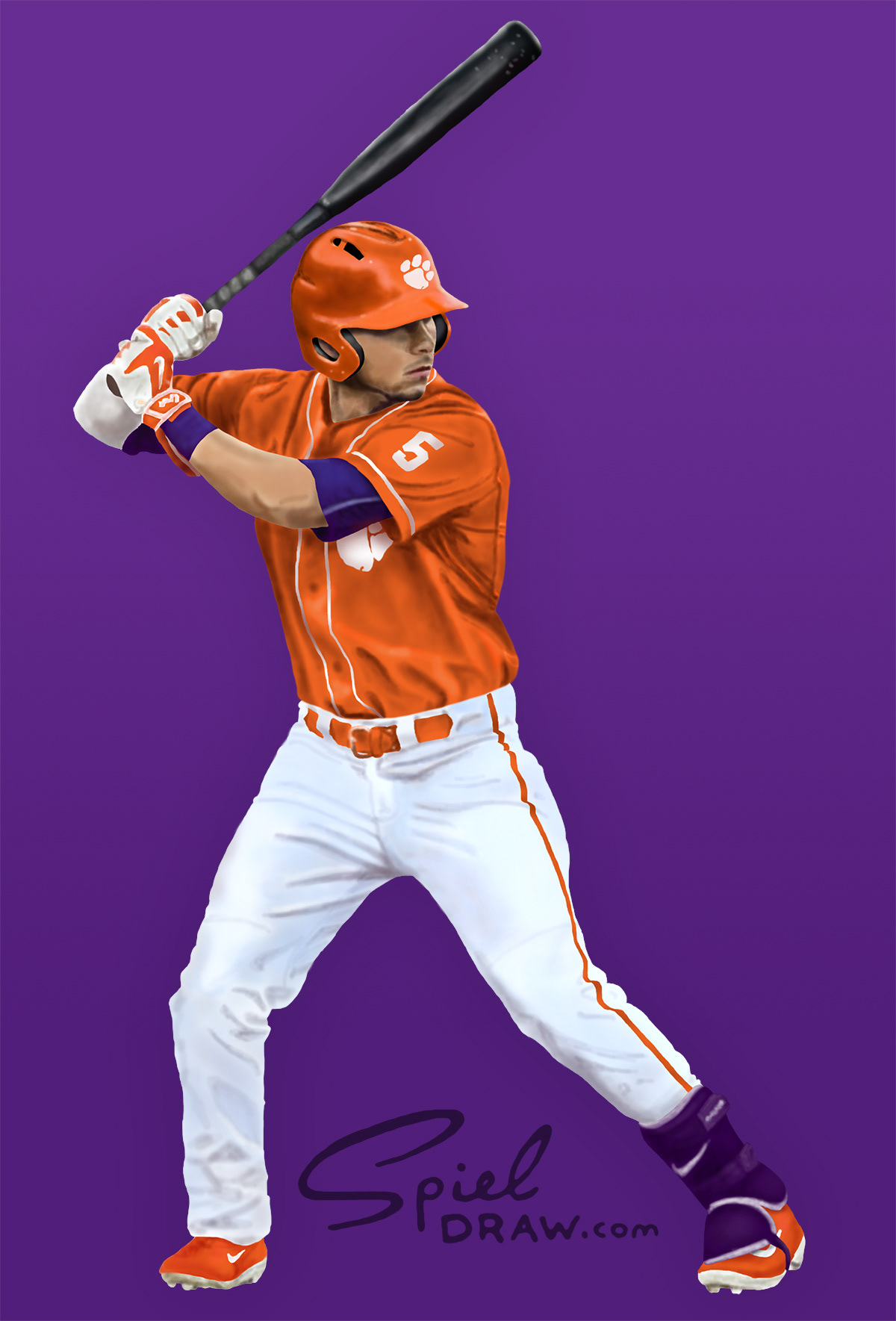 Digital painting of Clemson center fielder Chase Pinder. Created with Procreate and Photoshop.