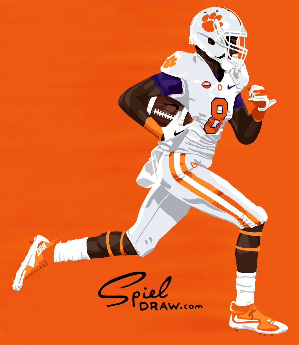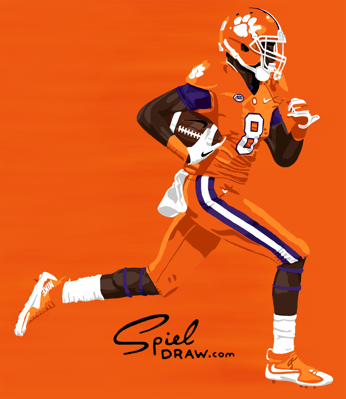 Digital illustration of Clemson wide receiver Deon Cain. Created with Procreate.