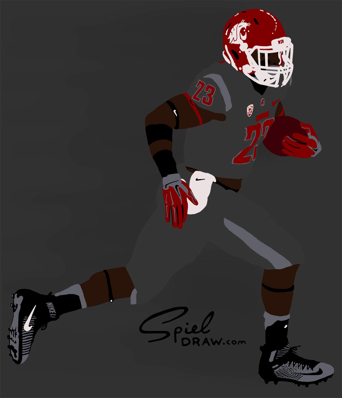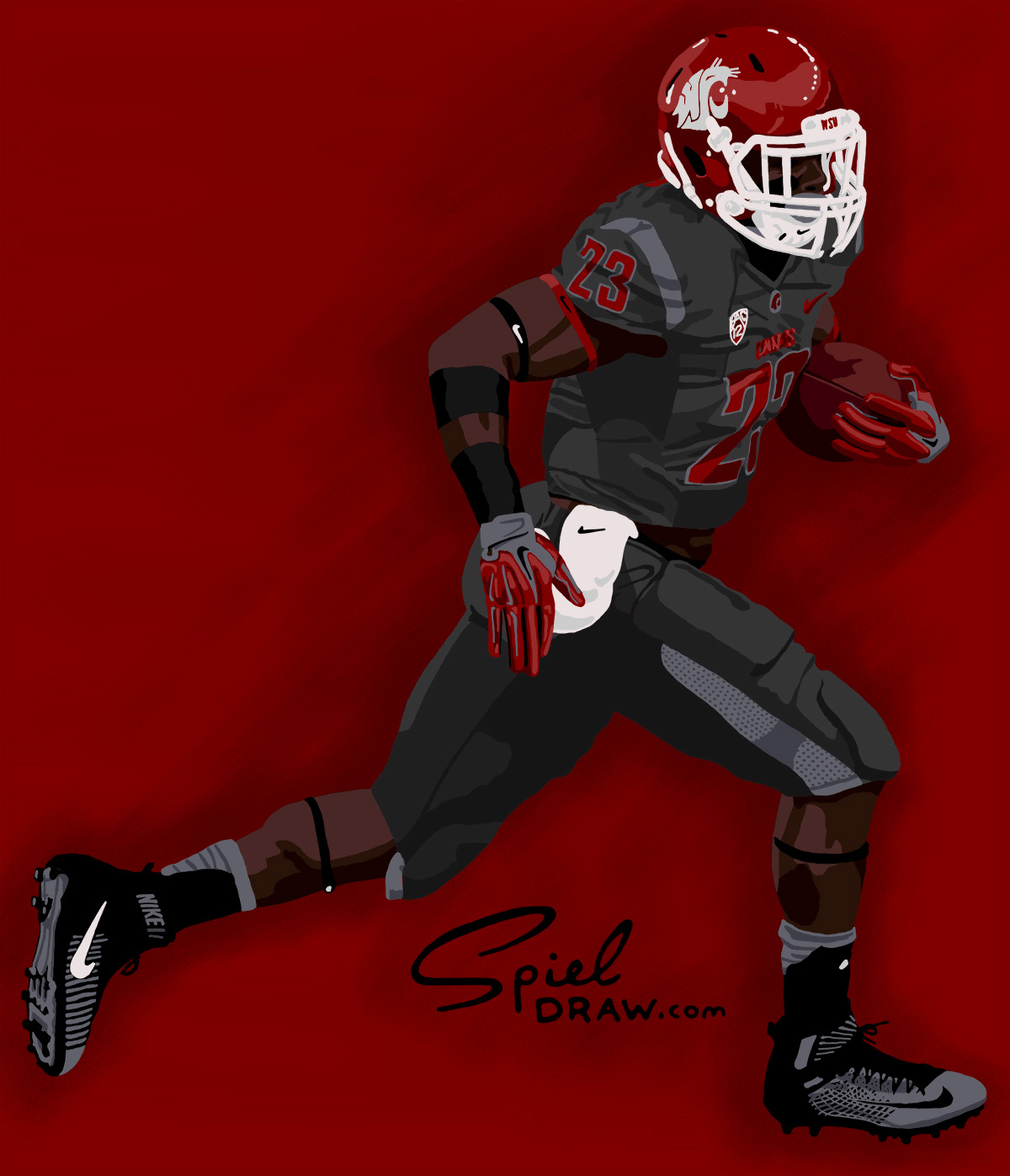 Digital illustration of Washington State running back Gerard Wicks. Created with Procreate.