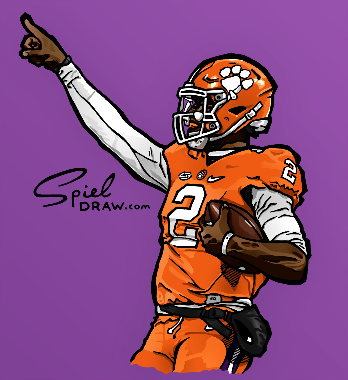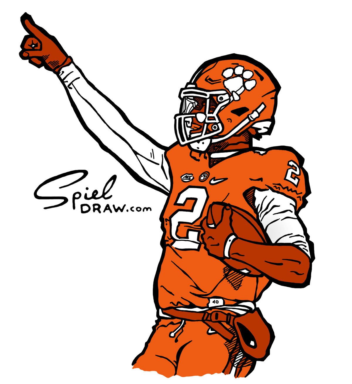 Digital illustration of Clemson quarterback Kelly Bryant. Created with Procreate and Photoshop.