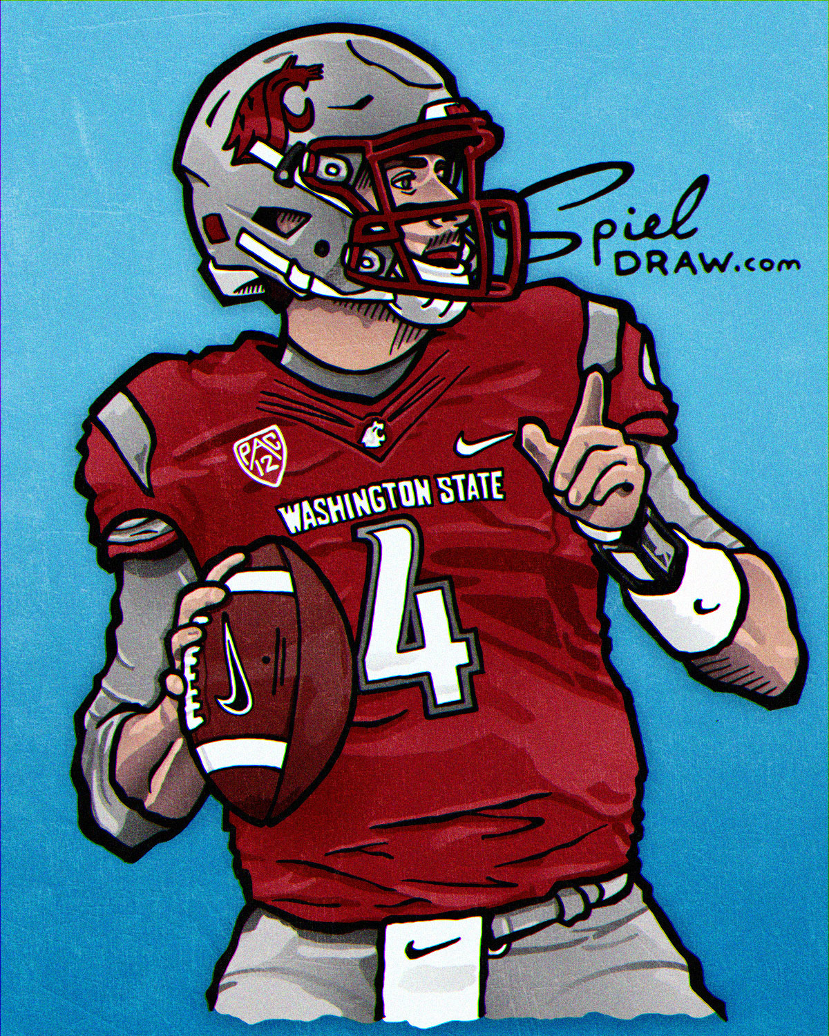 Digital illustration of Washington State quarterback Luke Falk. Created with Procreate and Photoshop.