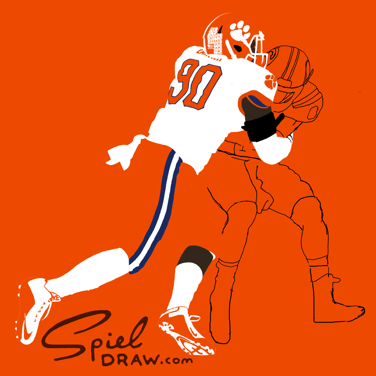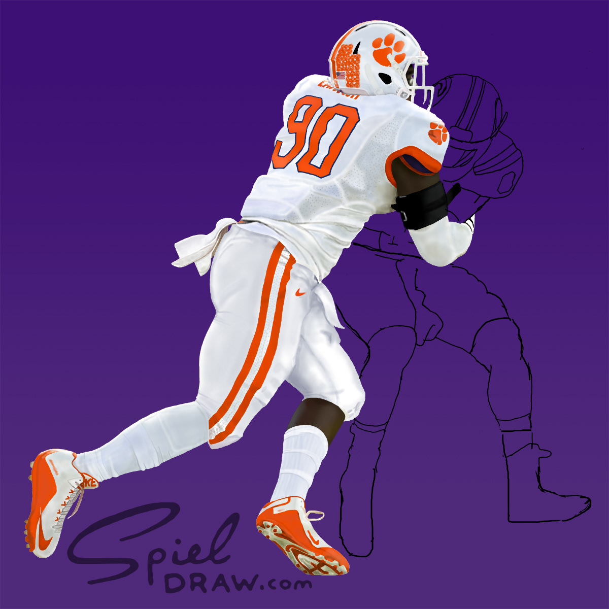 Digital painting of Clemson catcher Chris Okey. Created with paper, pencil, ink, and Photoshop.